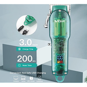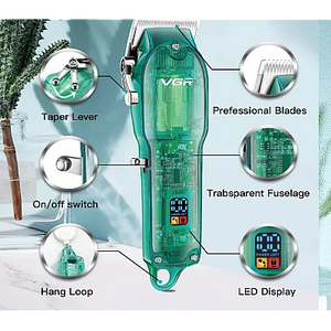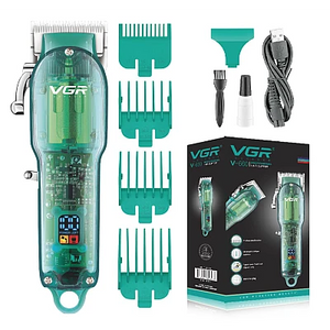 Aparat de tuns profesional cu afisaj LED, accesorii incluse, VGR V-660 verde