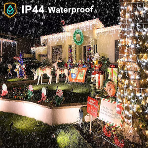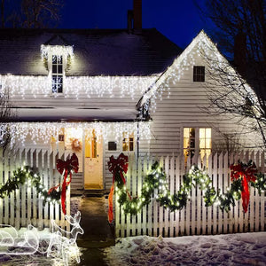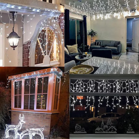 Instalatie Craciun Turturi 10m/288 LED-uri, 8 jocuri de lumini, Perdea, Franjuri, Exterior/Interior, Fir Alb, Interconectabila, Alb Rece