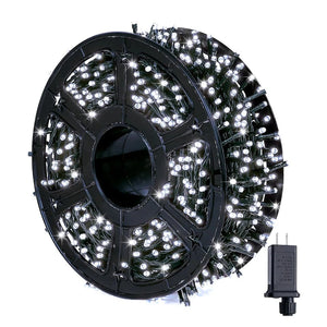 Instalatie De Craciun Liniara Dalys®, 100 m, 1000 LED -uri, Cu 8 Jocuri de Lumini, Pentru Exterior/Interior, Fir Verde Inchis