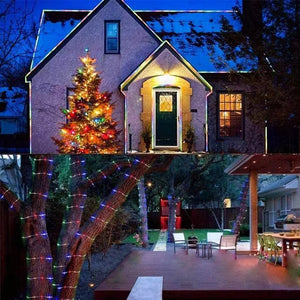 Instalatie de Craciun Rola 100m, 480 LED -uri, Cu 8 Jocuri de Lumini, Pentru Exterior/Interior, Fir Verde Inchis, Protectie Apa, IP 44