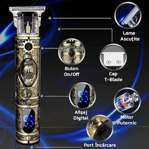 Masina Profesionala De Tuns - Afisaj Digital, Barba si Contur, Incarcare Rapida, Cablu USB-Type C, Auriu