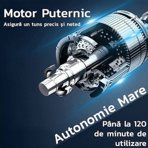 Este dotata cu o lama de inalta precizie cu tehnologie inovatoare. Fara cablu, ofera o viteza superioara si usurinta in utilizare si o baterie tip litiu-ion pentru o durata de 120 de minute de functionare dupa o incarcare completa (ce dureaza aproximativ 2 ore).