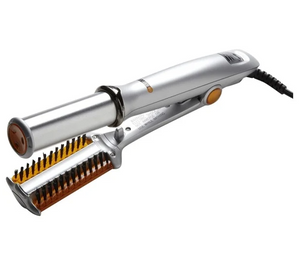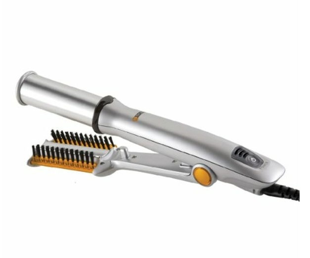 Plca de par 2 in 1 combina un cilindru rotativ incalzit, cu niste peri aliniati cu precizie.