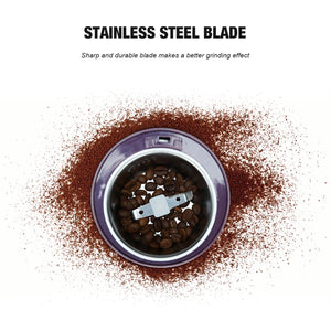 1. Maşină de măcinat cafea puternică: Mașina de măcinat cafea electrică cu lame din otel inoxidabil de înaltă calitate poate zdrobi toate boabele de cafea din recipientul de măcinat (nuci, ierburi şi condimente etc.)