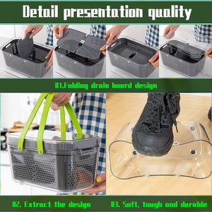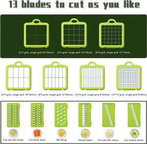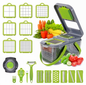 Razatoare Multifunctionala 2 in 1 Dalys® pentru legume si fructe, 22 de piese, cu functie de caserola, lame din otel inoxidabil si maner protectie, gri/verde