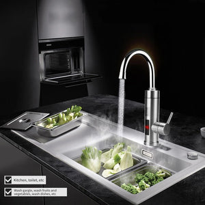 Robinet Electric Pentru Incalzire Apa Instant, Montare Chiuveta, Inox, Cu Display Si Rotire 360 Grade, Argintiu