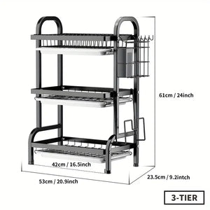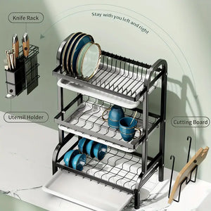 Design cu mai multe straturi: Designul pe trei niveluri ofera spatiu suplimentar de depozitare si va pastreaza ustensilele, vasele, cestile si multe altele uscate intr-o maniera ordonata.