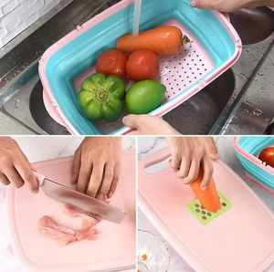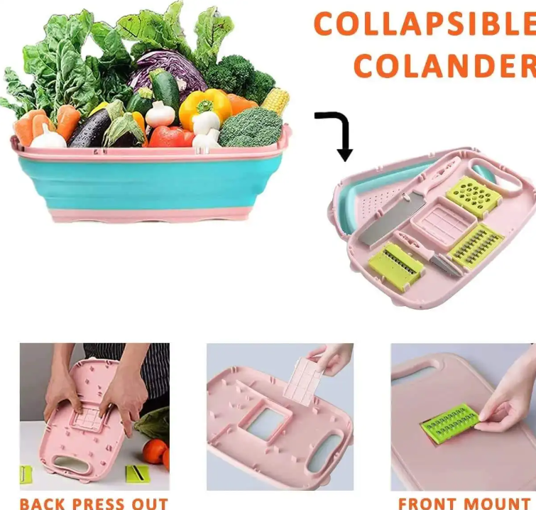 Material: placă de tăiat PP, coș de legume TPR, material netoxic ecologic, stabil și nu se descompune.